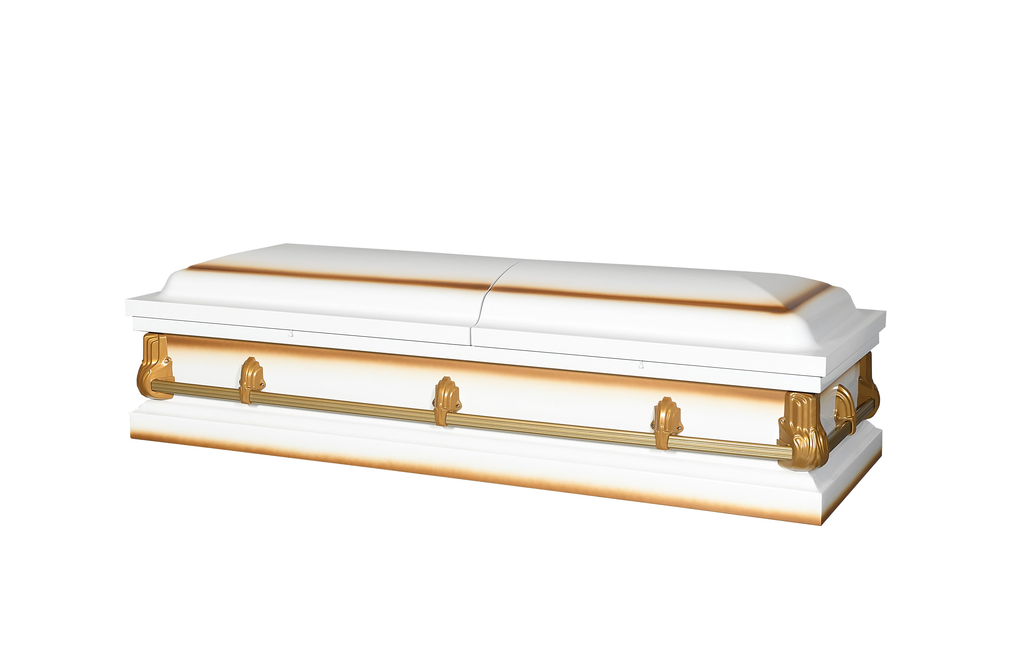 Honor your loved on with our Alex Steel White Half Couch Casket, featuring a sleek white finish and white crepe interior. This half couch coffin combines quality craftmanship with direct-to-consumer pricing, making it an affordable casket option without compromising dignity. The Alex Steel White half Couch Casket is a great option for honoring your loved one.