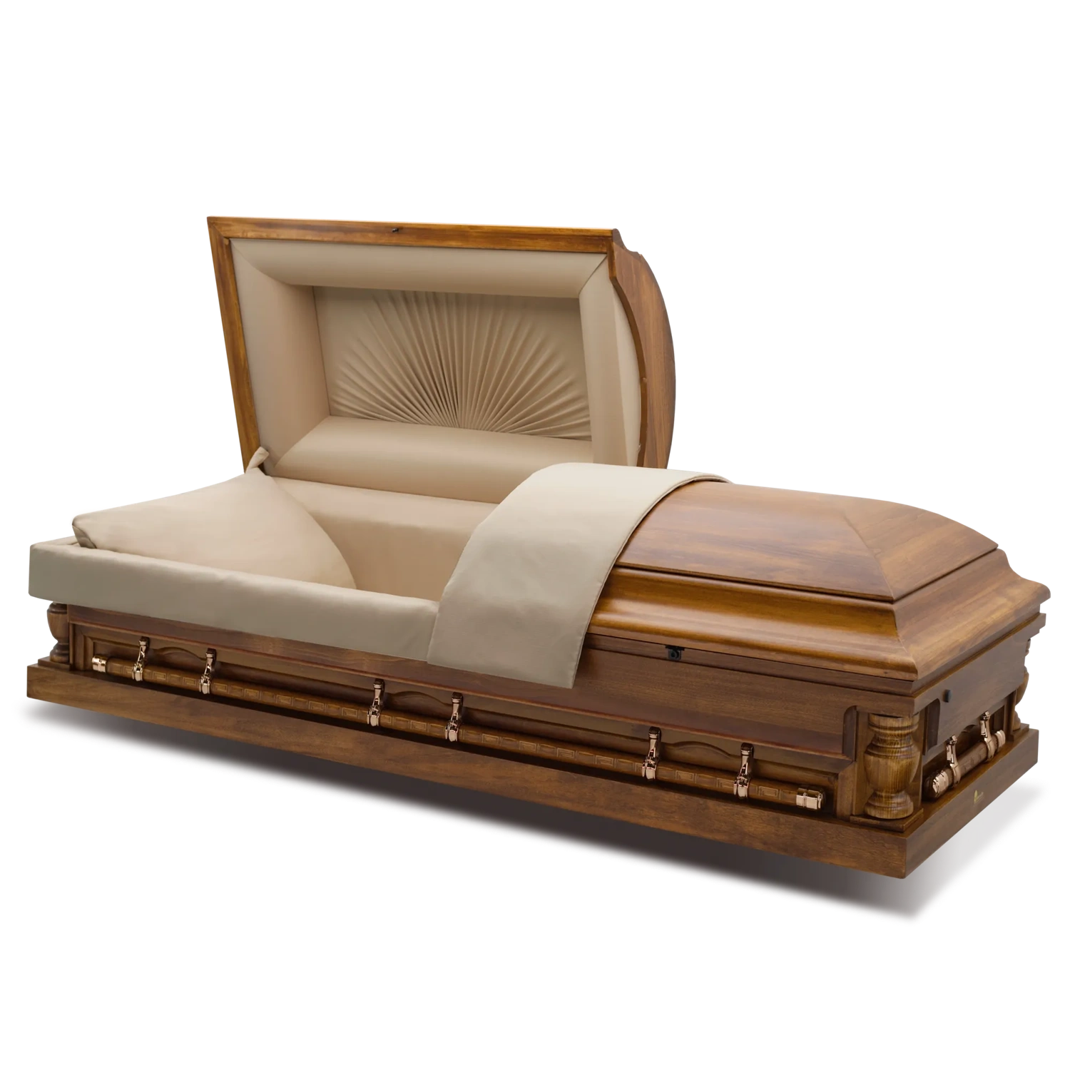 The Batesville Bailey 28" Hardwood Half Couch Casket is a dignified tribute designed to honor a life with warmth, beauty, and lasting quality. Expertly constructed of select hardwoods and veneers, this oversized 28-inch casket is finished in a rich pecan stain with a smooth satin sheen, a medium-tone exterior that highlights the natural character of the wood. Designed for versatility, this casket is suitable for burial or cremation and includes thoughtful features that support personalization, remembrance, and long-term peace of mind.