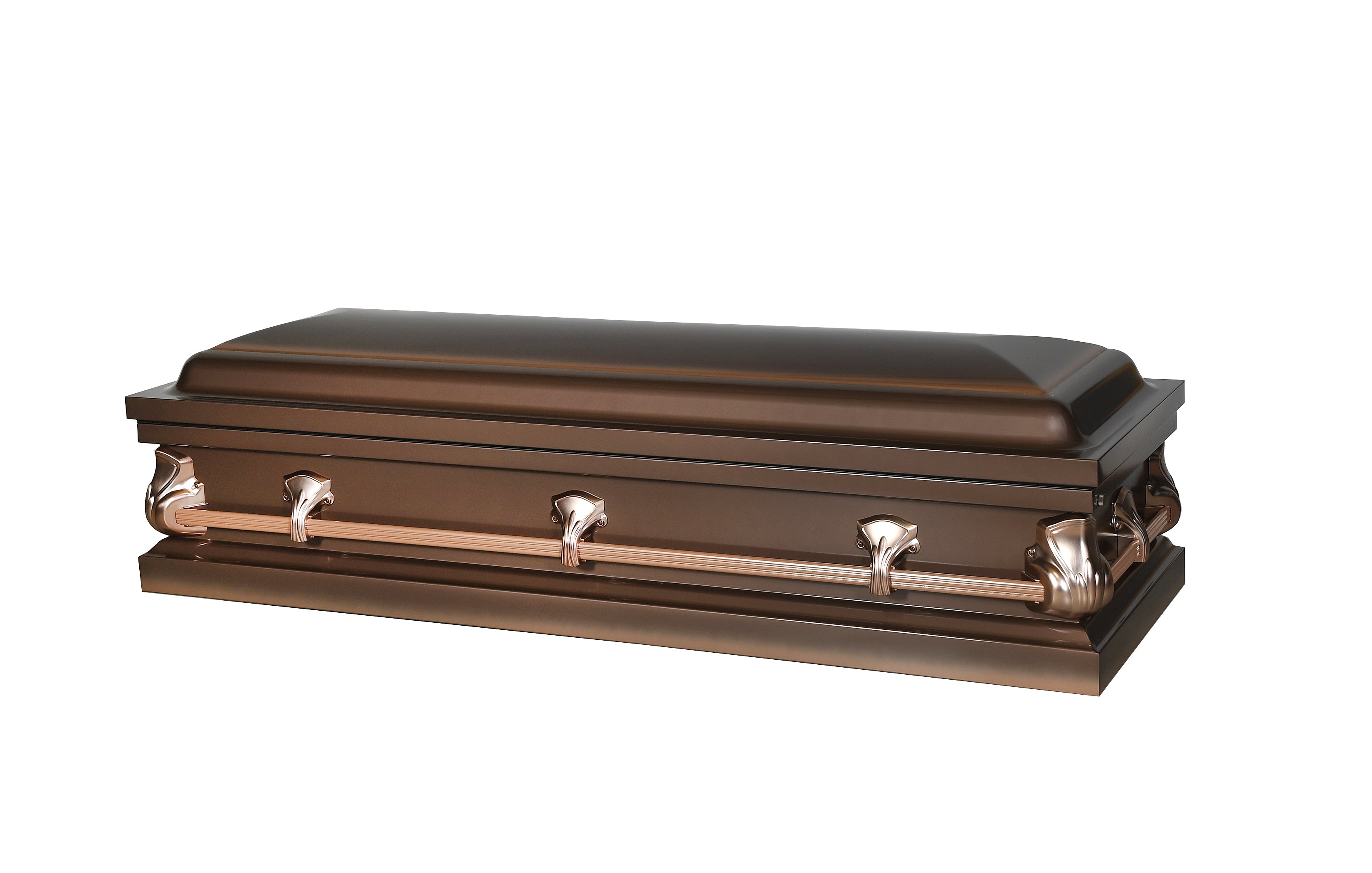 Honor your loved one with our Trinity Dark Bronze Full Couch Steel Casket, featuring a welded steel construction with tan crepe interior and full rubber gasket seal. This full-size funeral coffin combines quality craftsmanship with direct-to-consumer pricing, making it an affordable casket option without compromising dignity. Durable steel construction with an elegant dark bronze finish, and sealed bottom. Includes stationary bar handle, locking mechanism, and matching head and foot pillow with blanket. Eternal Rest adjustable bed provides comfort and proper positioning.